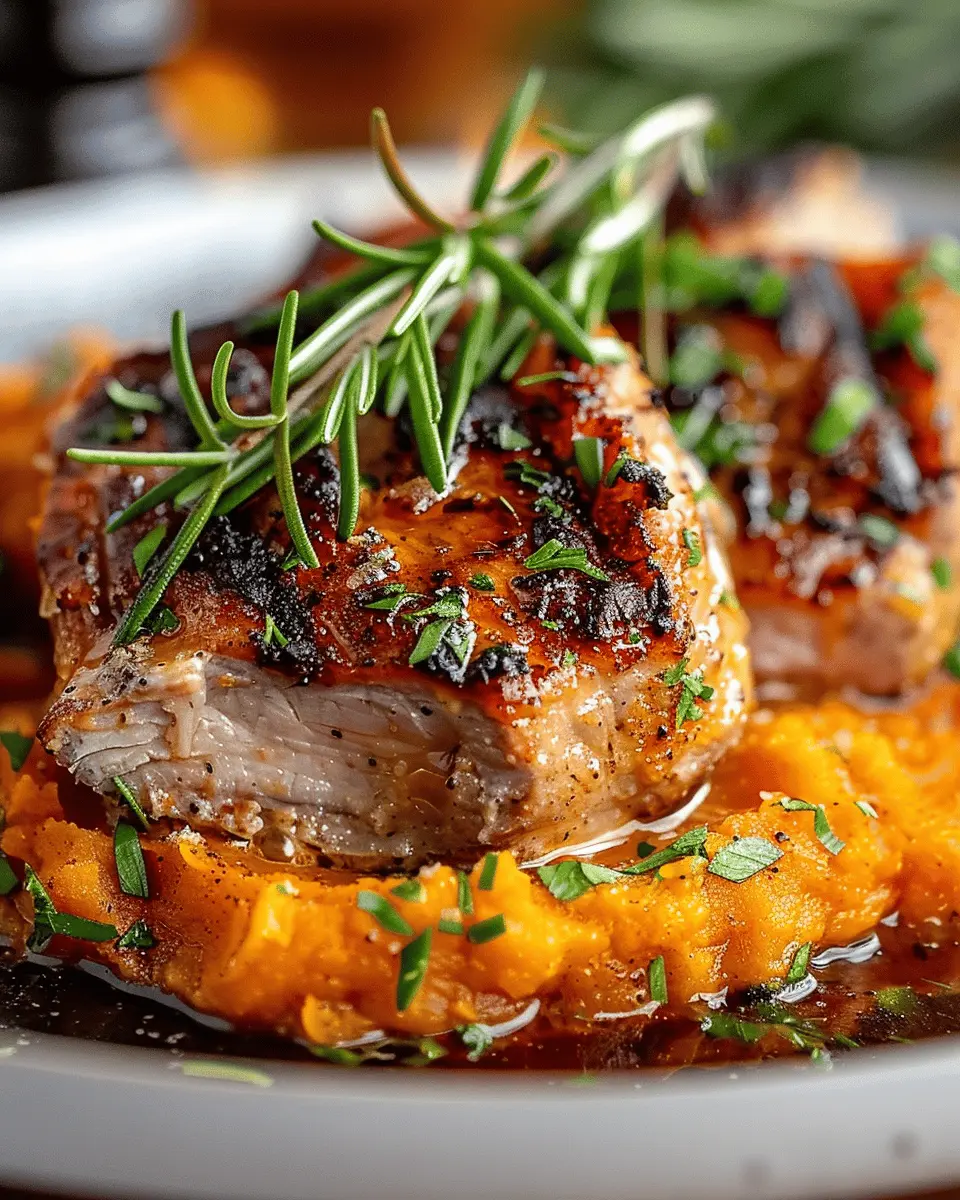 • Mashed Sweet Potatoes: Creamy and sweet, they balance the savory flavors of the pork beautifully.