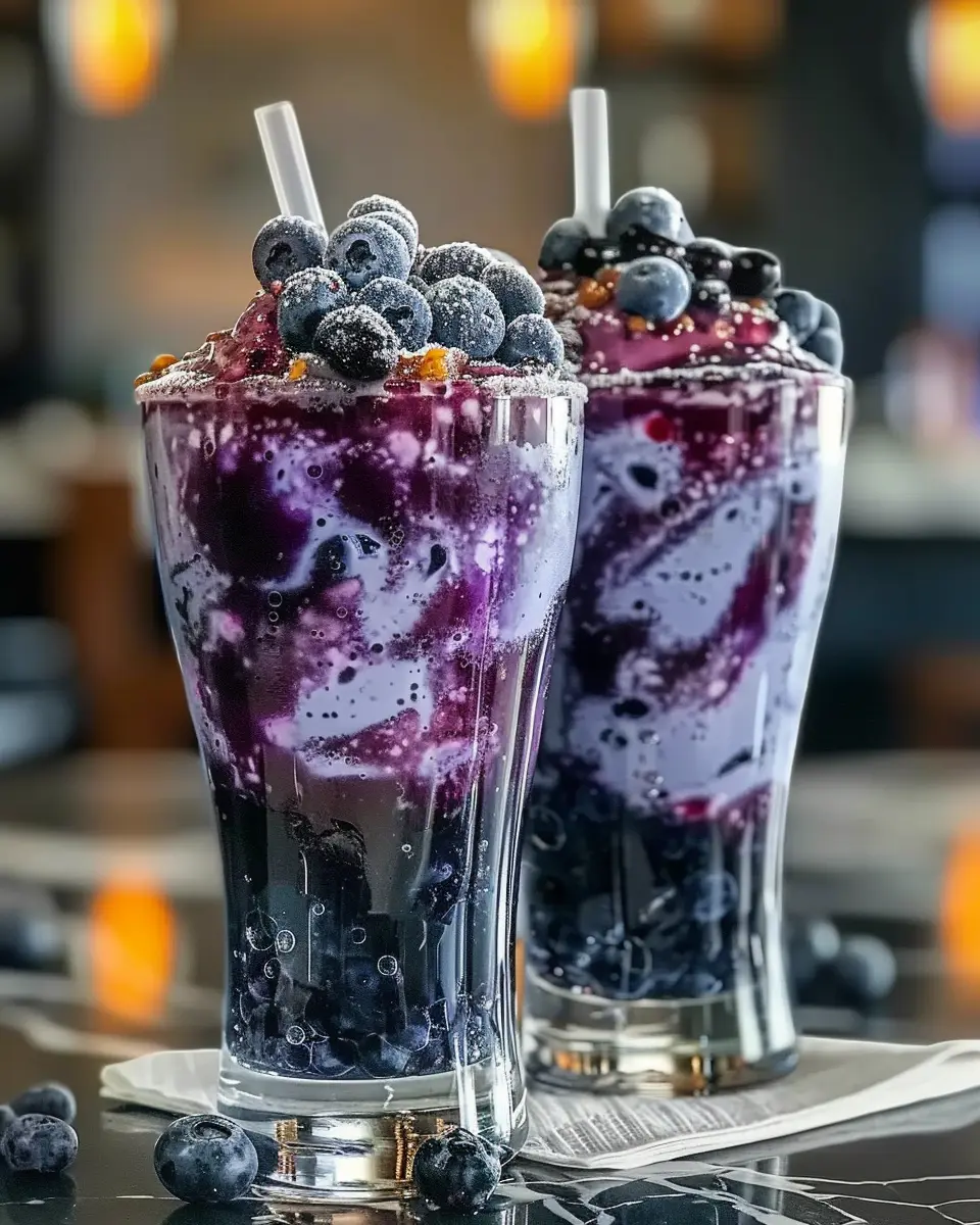 To elevate the aesthetic of your drink, it’s time to create that stunning swirl. Using a spoon or a straw, gently stir without fully incorporating the layers. The idea is to have that creamy blueberry mixture meld beautifully with the fizzy soda, creating an inviting visual contrast.