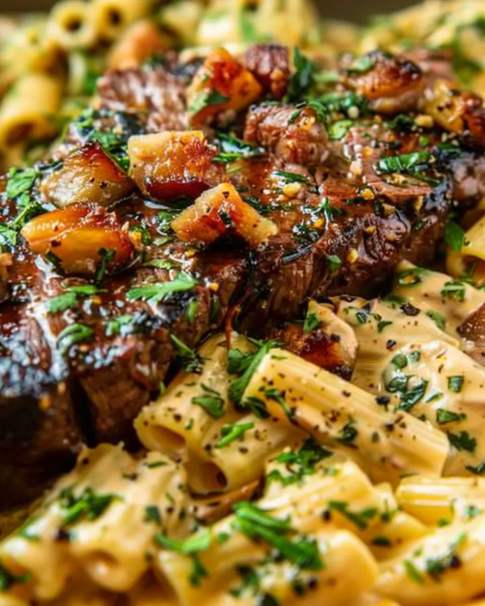 Keywords: Cheesy Cajun Garlic Butter Steak with Creamy Rigatoni