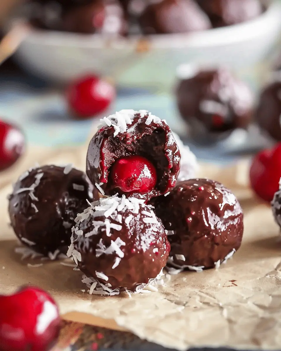 • How to Make It: Add unsweetened shredded coconut into your mixture, integrating it seamlessly with the cherries and nuts. Roll the balls in additional coconut for a beautiful finish.