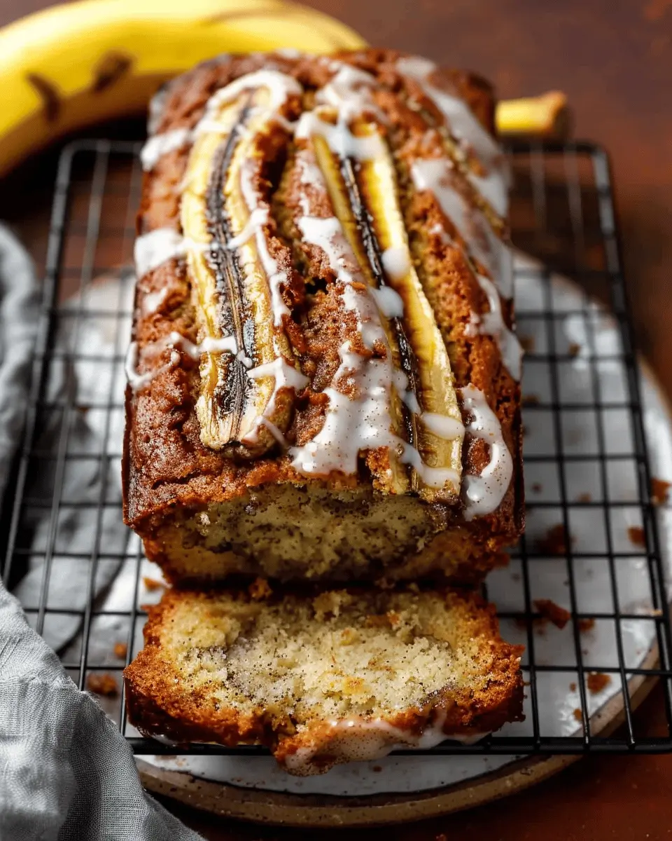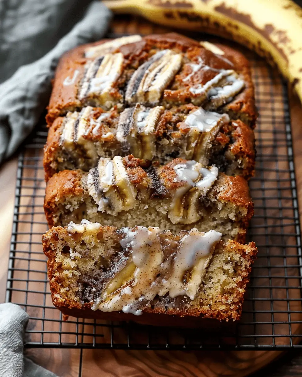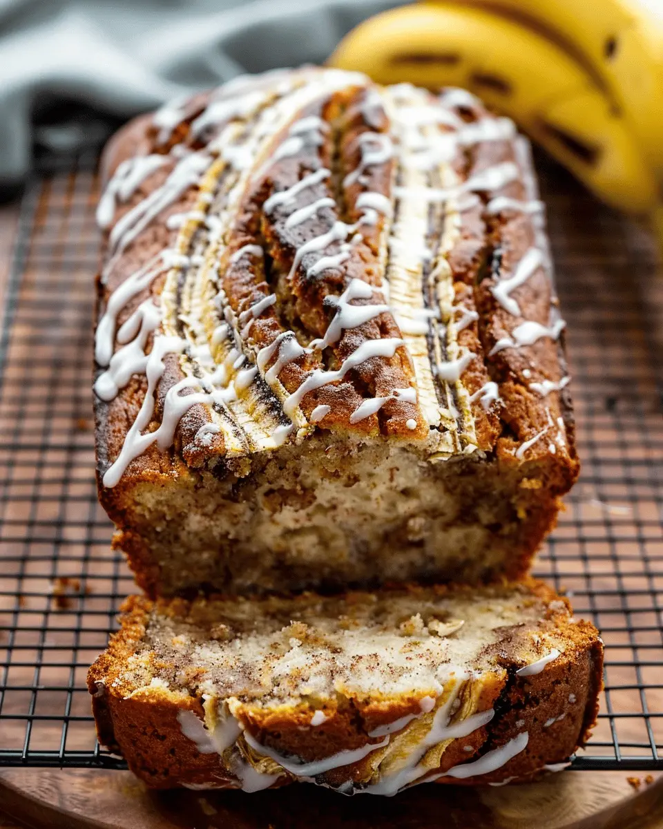 Finally, let’s talk about toppings! A drizzle of vanilla icing elevates the cinnamon swirl banana bread experience: