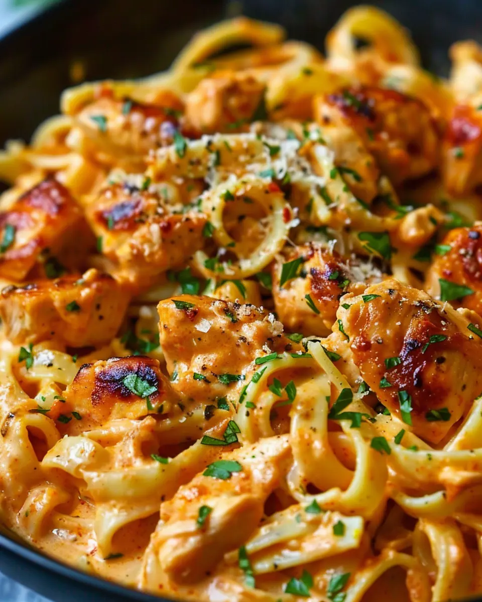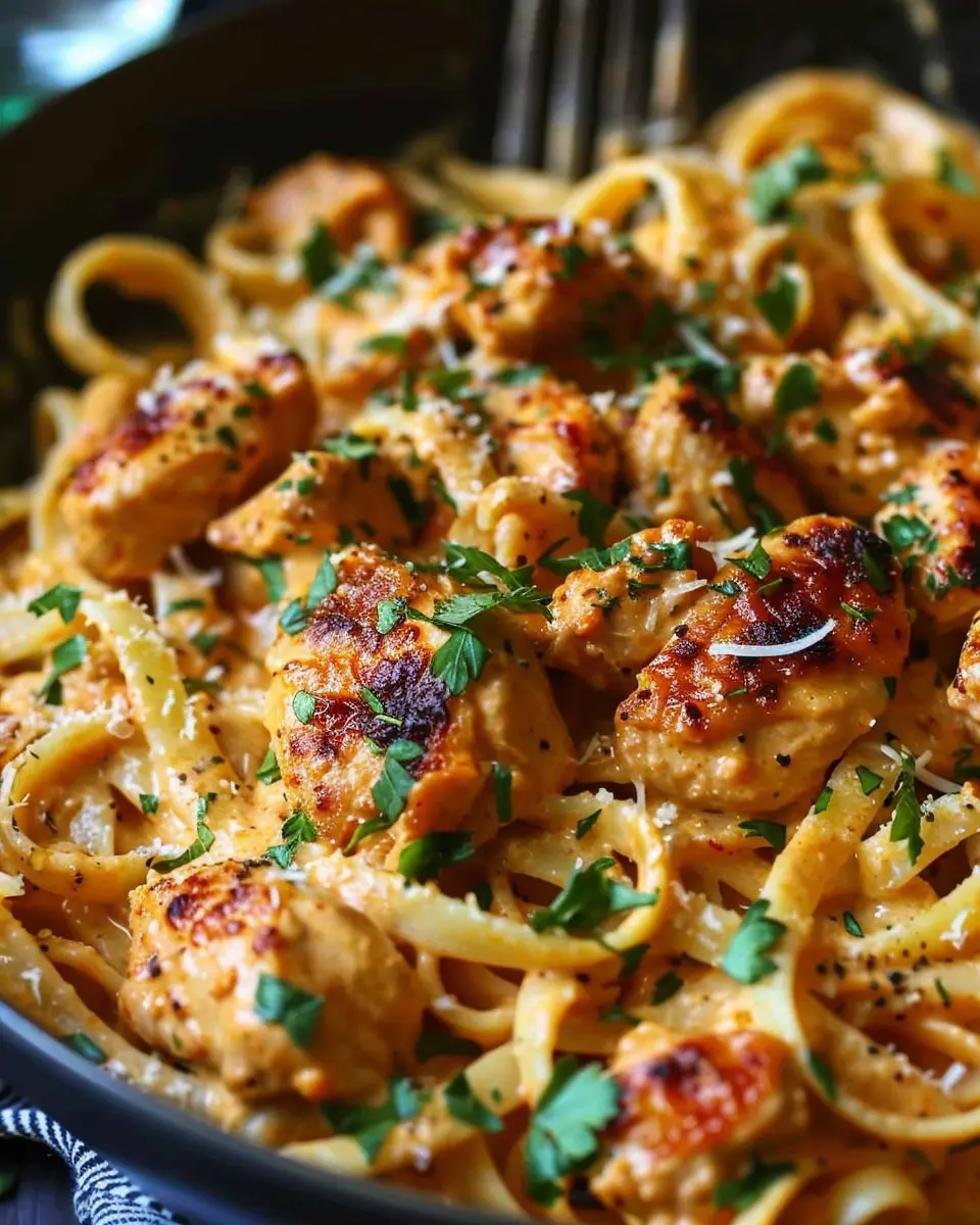 This pasta dish also caters perfectly to a busy lifestyle. With ingredients that you probably have on hand, such as chicken, garlic, and pasta, you can whip this meal together in no time. Plus, the vibrant colors and rich aromas will fill your kitchen, making it feel welcoming and homey. Have you ever thought about how a great meal can transform your day?