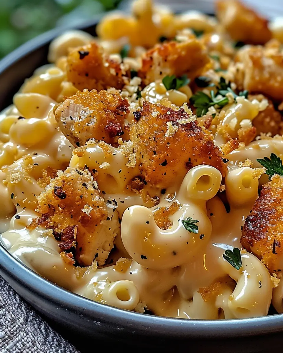 Crispy chicken elevates your mac and cheese from ordinary to outstanding. To achieve that perfect crunch, use Turkey Bacon or Chicken Ham to complement your dish while keeping health in mind. Marinate your chicken in a mixture of spices and a drizzle of honey for flavor.