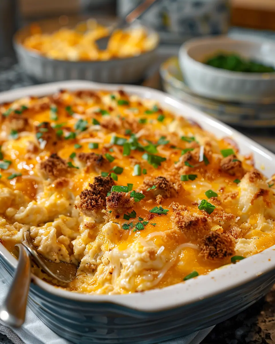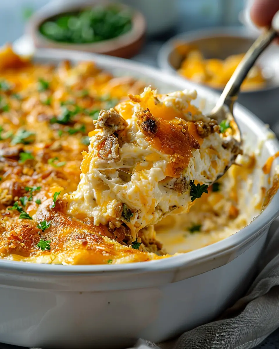 Every great casserole needs a crispy topping, and this one is no different. For your topping, you want the perfect balance of crunch and flavor. Take the remaining one cup of shredded cheddar cheese and mix it with a few crushed potato chips or panko breadcrumbs for that added crunch. These will crisp up beautifully in the oven, providing a lovely contrast to the creamy filling.
