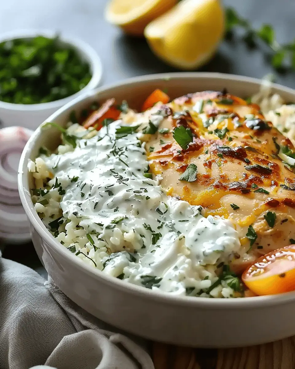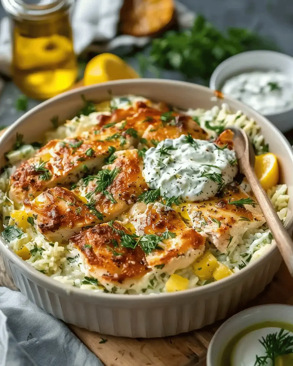 To elevate your Dump-and-Bake Chicken Tzatziki Casserole, consider these garnishes: