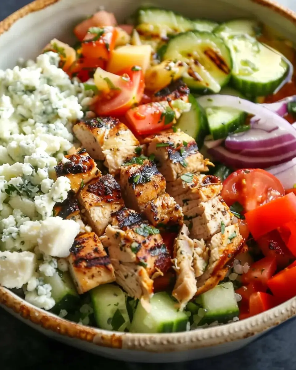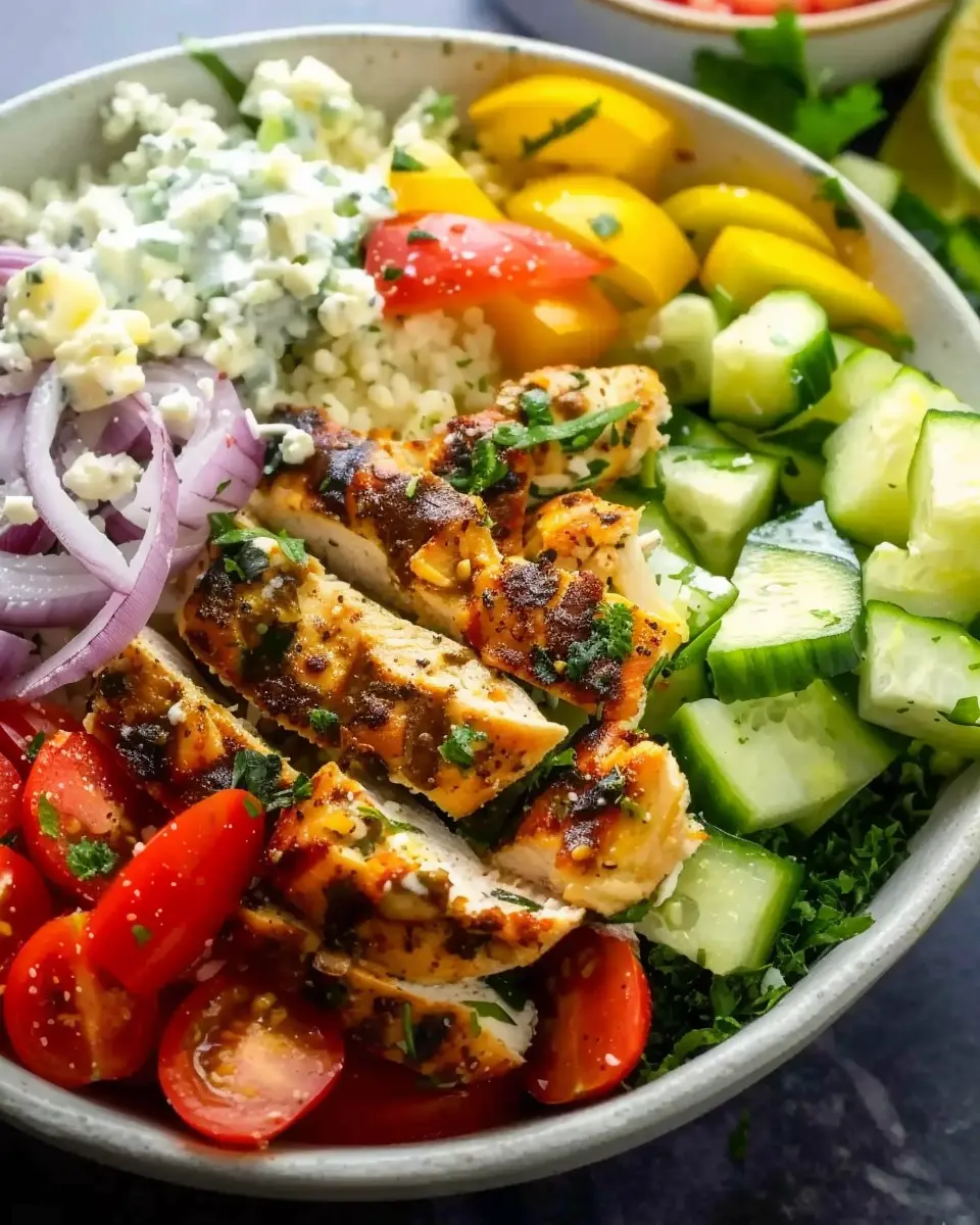 Elevate your Greek Chicken Bowls with vibrant toppings. Consider: