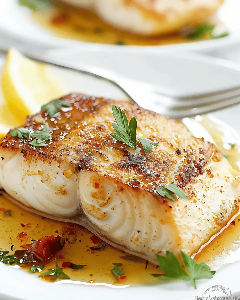 Your halibut is ready to shine! Plate the fish and drizzle the lemon butter sauce generously on top. You might want to serve it with a side of steamed vegetables or a light salad for a complete meal.
