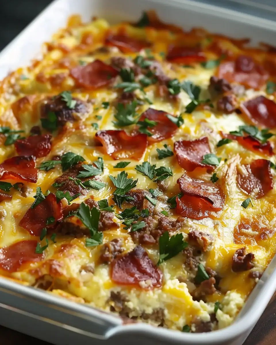A delightful breakfast casserole that can be prepared in advance for a hassle-free brunch. Perfect for entertaining guests!