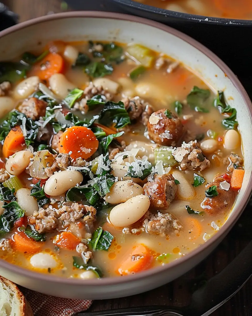 In summary, Italian Sausage and White Bean Soup is a comforting blend of flavors that brings warmth to any table. Its rich, savory broth, combined with hearty beans and slightly spicy sausages, creates a dish that’s not just satisfying but also incredibly versatile. This soup is perfect for cozy nights in or for impressing guests at dinner parties.