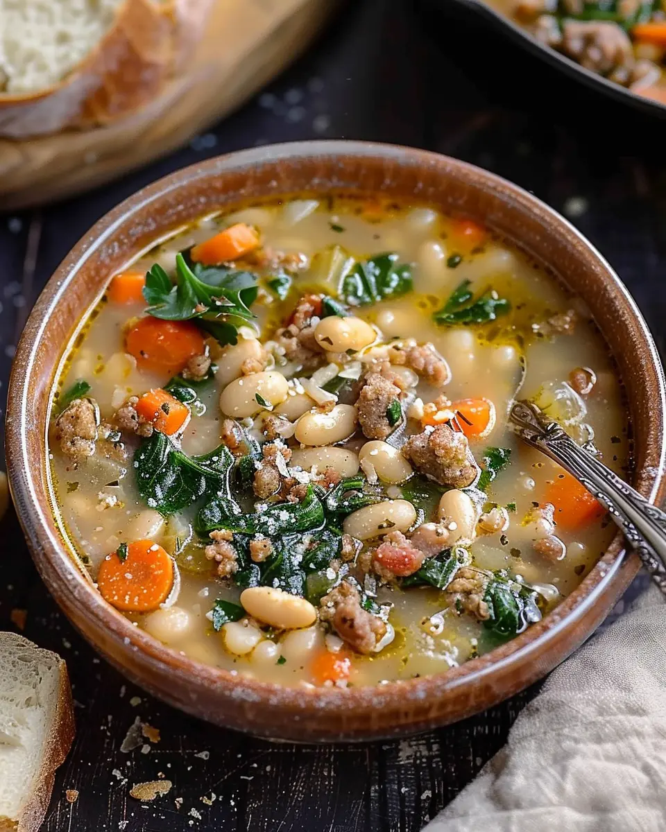 Warm up with a bowl of this delicious Italian Sausage and White Bean Soup, perfect for chilly days.