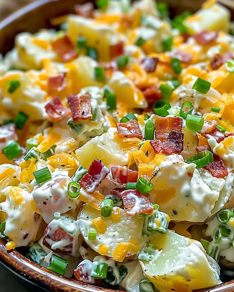 PrintLoaded Baked Potato Salad: Indulgent Twist with Turkey Bacon