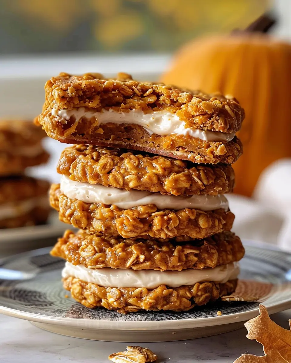 Enjoy the flavors of fall with these delightful pumpkin oatmeal cream pies, a perfect treat for the season.