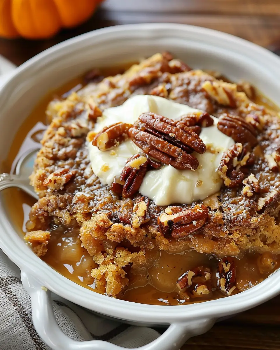 Keywords: Pumpkin Pecan Cobbler, Fall Dessert, Comfort Food