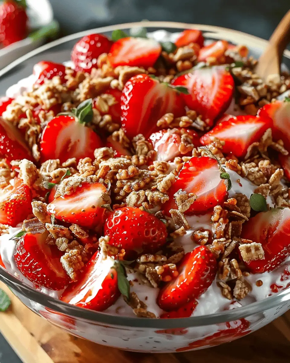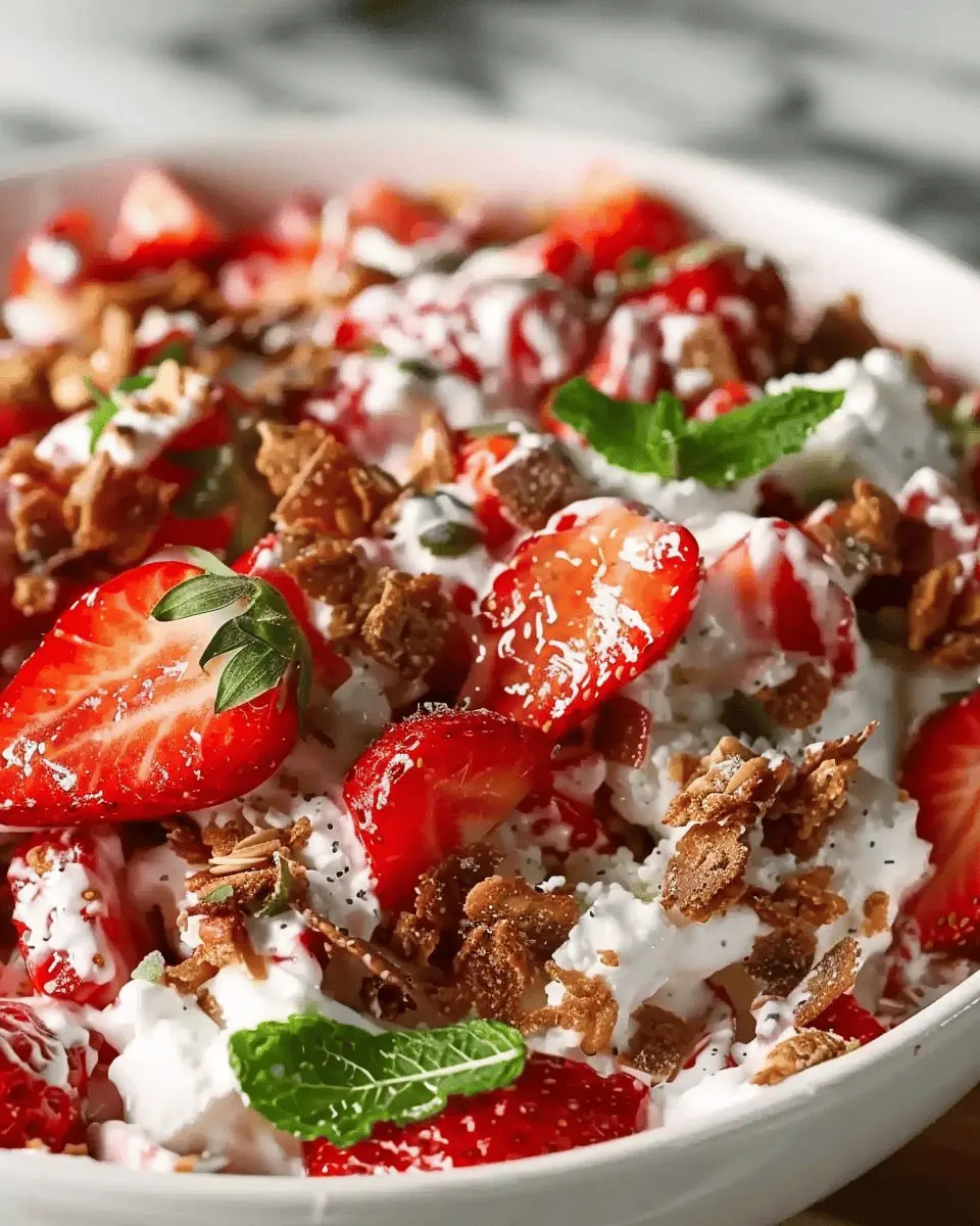 A refreshing and easy-to-make salad that combines the sweetness of strawberries with a delightful crunch.